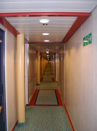 Lage: Deck 4 mittschiffs, steuerbord Größe: 13,5 m², 2 Einzelbetten + 1 Klappbett oben (siehe Foto) Beschreibung: IB-Innenkabine (ehemals C), gute Lage (aber weite Fusswege/Liftwege weil unterstes Passagierdeck), keine Geräuschbelästigung, wie alle AIDA-Kabinen viel Stauraum, Platz reicht für 2 Personen aus, Einzelbetten sind wenig romantisch ;-), dunkle Türen machen die Gänge sehr dunkel.