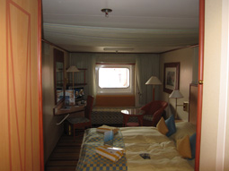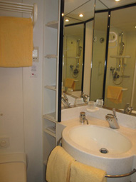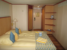 Lage: Deck 7 mittschiffs, steuerbord Größe: 17 m², Doppelbett, Couch Beschreibung: Große Außenkabine mit eingeschränkter Sicht, halbe Sicht zwischen zweier Rettungsboote. Sehr gute Lage - nur wenige Schritte zum Wasserspender, keine Geräuschbelästigung, wie alle AIDA-Kabinen viel Stauraum. Sehr zu empfehlen!
