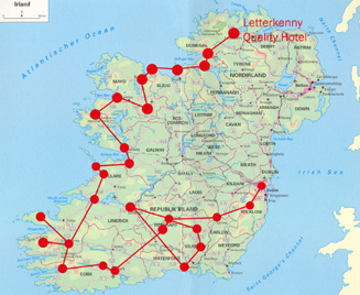 Stadt auf unserer Route nach Dublin. An der Main Street reihen sich